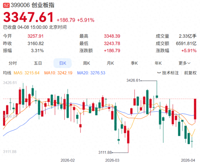 伴随着中东紧张局势降温,今日全球股市发生极致反转行情。截至收盘,创业板指暴涨5.91%,上证指数和深圳成指的涨幅则分别达到2.7%和4.79%,两市超5100股上涨,合计成交量超过2.4万亿,较昨日大幅放量逾7000亿。