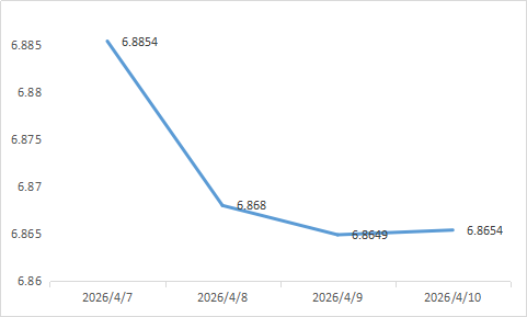 前一交易日(4月10日),在岸人民币兑美元16:30收盘报6.8333,较上一交易日升值77基点;全周累计升值470个基点。